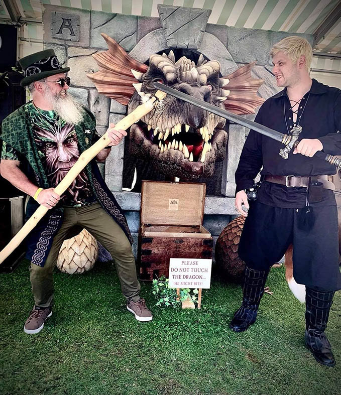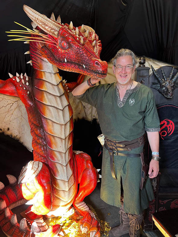 John’s large, sculpted dragons have featured at many events, both here in the UK and abroad, such as Fantasy Forest, Elfia, on loan to Leeds library and even featured on the BBC News, to name a few.